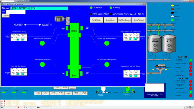 Our control engineers offer solutions to fully automate your facility. We will provide you with the total control of equipment and process, reduced product shrink, reduced labor expense, and increased facility efficiency. Our custom automation packages are designed to fit the needs of each individual facility. By seamlessly integrating a hazard monitoring system, along with automation, our company will provide a user-friendly system that will detect problems before they occur.